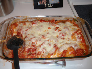 Anyways - we didn't really have a theme tonight but we made an app, entree, and salad. Everything turned out really yummy (even if we didn't have a ripe avocado) :) The main dish might not be the most healthy - but it was quick and easy....Can't go wrong with pasta and Velveeta!! The salad was pretty good - liked the mandarin oranges! and really liked the Cali-schetta.....only has 117 calories per slice too....not bad for eating bread :)